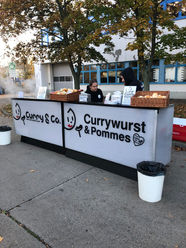 Ob Geburtstag, Jubiläum, Weihnachtsfeier, Firmenveranstaltung oder Hochzeit: Ein Currywurst-Snack ist immer eine Bereicherung, passt fantastisch zum Programm und macht es zum unvergesslichen Erlebnis. Du hast die Wahl zwischen einer geräucherten bzw. gebrühten Currywurst, einer 100%-igen Rindswurst und einer veganen Variante. Bei den Saucen stehen Dir die Klassiker mild und scharf, dazu Erdnuss, Honig-Senf, Zwiebel-Chili und Käse-Jalapeño zur Auswahl. Neben den klassischen Pommes und Gemüsepommes mit unterschiedlichen Dips, gehören auch Chips, Brezel und Brötchen zu unserem Angebot.